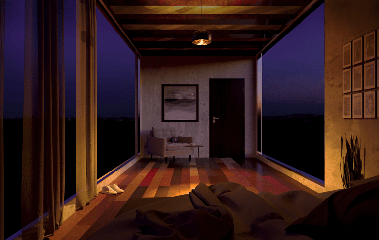 Imagem noturna com aplicação de luzes IES, que trazem mais realismo utilizando fotogrametria para mapear o feixe de luz.