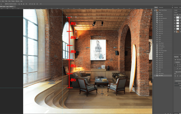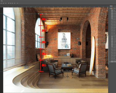 Início do projeto. O primeiro passo é definir as dimensões de algo já conhecido como parâmetro, com auxílio do Photoshop. Neste caso, utilizaremos o sofá.