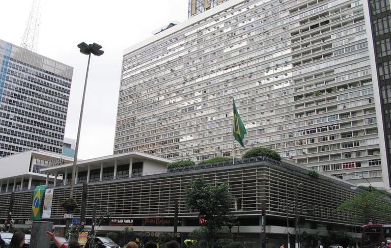 Impossível não citar o Conjunto Nacional quando se trata de complexos híbridos. Símbolo máximo nesse sentido, embora sua massa pareça monstruosa a princípio, chega a ser tão delicado em seu percurso que nem se percebe a transição entre a calçada e o interior do prédio.